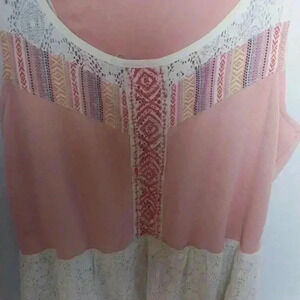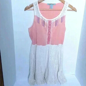 Flying Tomato Peach Summer Dress with Beige Lace Skirt & Tribal Print Size L