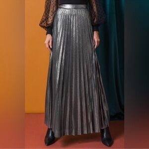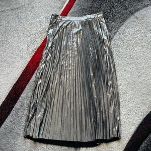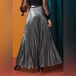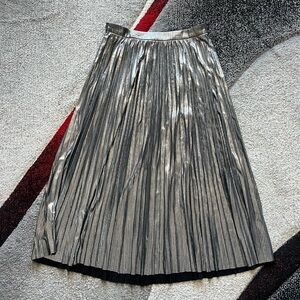 Flying Tomato Pleated Silver Metallic MIDI Skirt