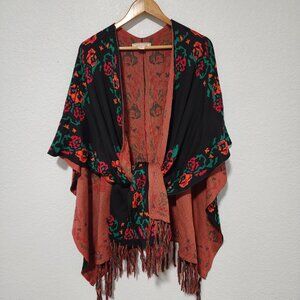 Flying Tomato Poncho Cape Wrap Kimono Floral Retro Fringe Medium/Large