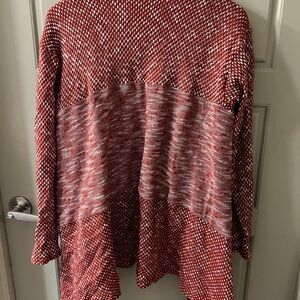 Stay cozy and stylish with this elegant red sweater featuring a chic fringe design. Perfect for layering and adding a pop of color to your outfit. Size small in great condition. D6