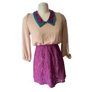 Flying Tomato Sheer Lacy Sz Medium Mini Dress Beige & Purple 3/4 Sleeve