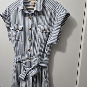 Flying Tomato Striped Jumpsuit with Belt, Button Down, Short Sleeve, S