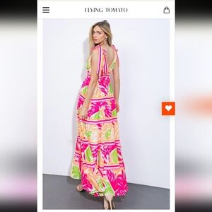 Flying Tomato Take the Trails Woven Maxi Dress Fuschia Orange Tropical Size M