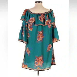 Flying Tomato Teal Ruffle Floral Rose Off The Shoulders Dress Size S Small