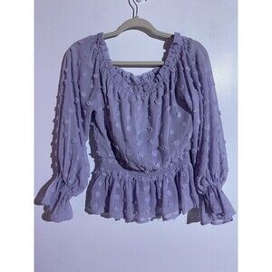 Flying Tomato Top Small Lavender Boho Peplum Off Shoulders Cottagecore Peasant