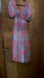 Vibrant long sleeve dress with bold floral patterns. Features a striking blue and red color scheme. Perfect for making a statement.