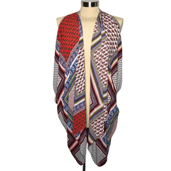 Flying Tomato Wms S Open Front Colorful Drape Vest Cardigan Festival Boho