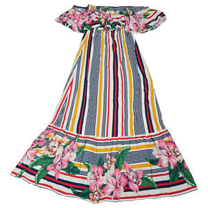 Flying Tomato Women Small Off Shoulder Multicolor Midi Dress Spring Summer EUC