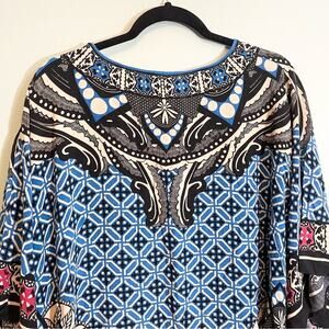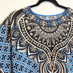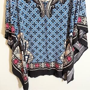 Flying Tomato Women's Blue Rayon Paisley Print Pullover Poncho Top Size Large