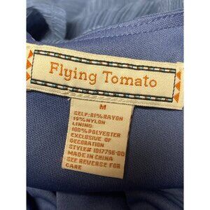Flying Tomato Women's Blue Tiered Flutter Sleeve Crepe Dress Size Medium