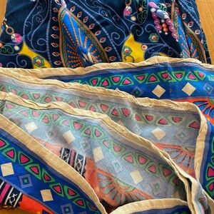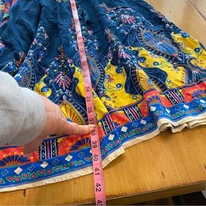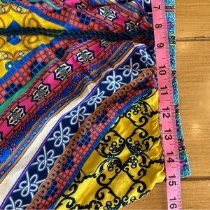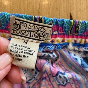 Flying tomato pre-loved colorful printed long skirt. Colors are Blue, yellow, orange and pink. 100% rayon and lightweight. The waist is elastic. The tie strings from the waist are for decoration. They do not pull it tighter. The waist stretches to about 15 inches flat. The length is about 41 inches. Thank you for considering my item. 🌷