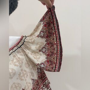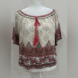 Flying Tomato Womens Boho Floral Feather Off The Shoulder Boat Neck Top, Medium