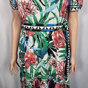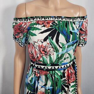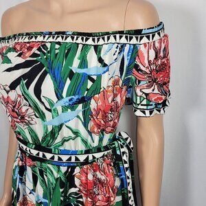 Flying Tomato Women's High Low Off the Shoulder Tropical/Botanical Dress Size S