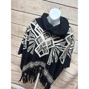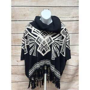 Flying Tomato Womens Poncho Size M/L Black Bohemian Sweater Pullover