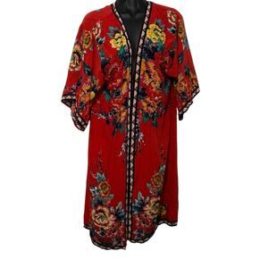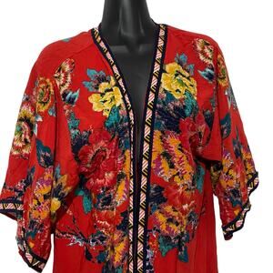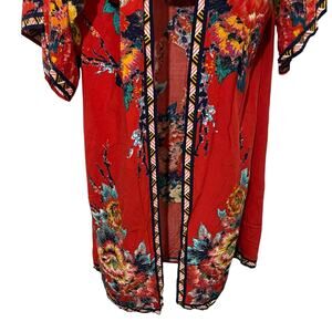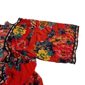 Flying Tomato Womens Size S/M Red Floral Kimono Open Front Cover Up Lightweight