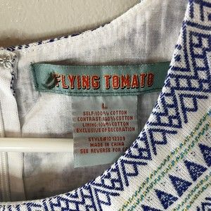 Flying Tomato Womens Sleeveless Dress White Blue Embroidered Sundress Size Large.