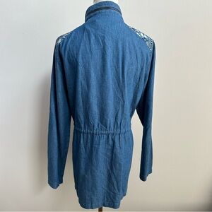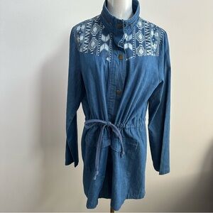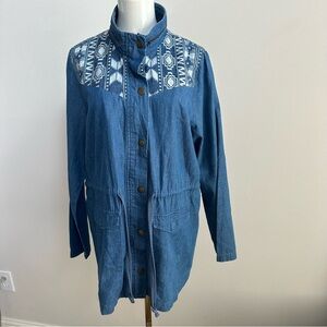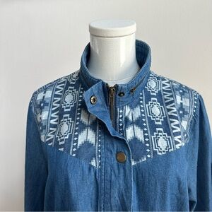 Flying Tomato Women’s Western Aztec Denim Long Lightweight Full Front Zip Up / Button Up Jacket Size Large