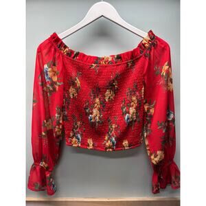 Flying Tomato cropped blouse in a red floral print. Sz Small