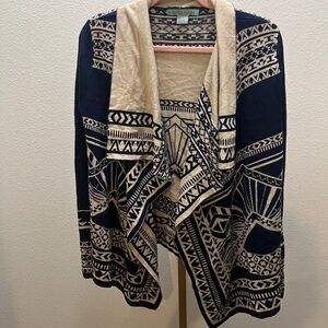 Flying Tomato, long sleeve wide open flap collar cardigan asymmetrical, Small