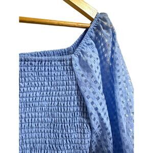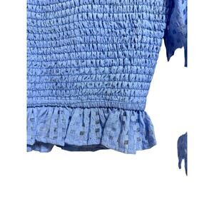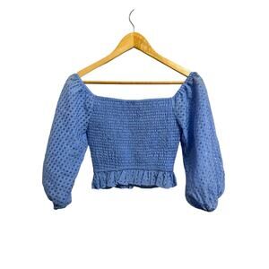 Flying Tomato women's blue smocked ruffle puff sleeve crop top size Small