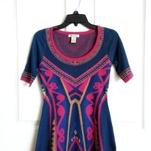 Flying Tomato Aztec Print Scoop Neck Sweater Dress