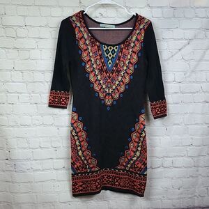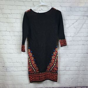 Flying Tomato (S 2/4) Black Tribal Bodycon Beatriz Sweater Dress Anthropologie