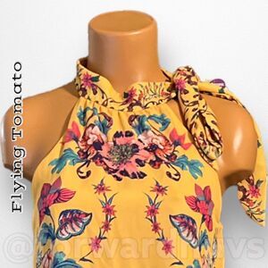 Flying Tomato Yellow Floral Halter Style Lined Mini Size Small