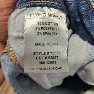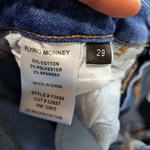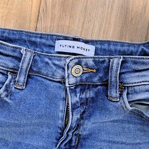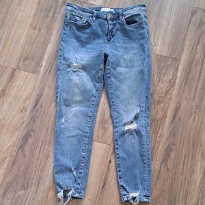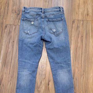 Size 29 (9) slight stretch to these denim worn-look with holes jeans. Torn at ankles for a cute cropped look. Great condition, non smoker, just lost weight so they no longer fit.