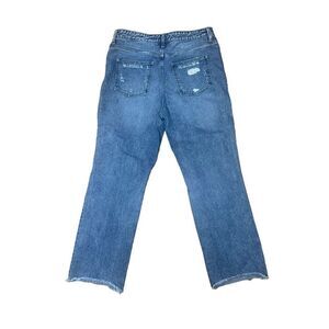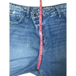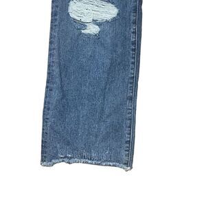 Flying monkey high rise straight raw hem button fly demin distressed jeans 9(29)
