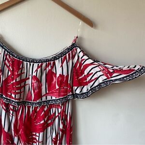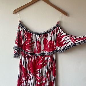 Flying tomato boho red black floral tropical pattern off shoulder dress