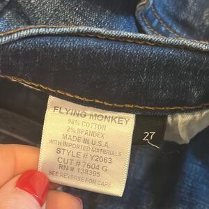 Flying Monkey Women’s Classic Blue Denim Jeans with Slit on Front - Size 27. Elevate your style with these classic blue denim jeans. Perfect for any casual occasion. Gently worn. 27” inseam.