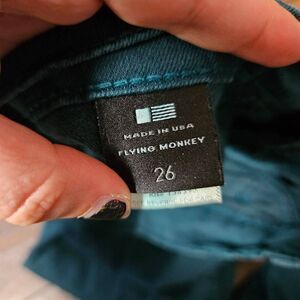This is a pair of green skinny jeans by Flying Monkey.