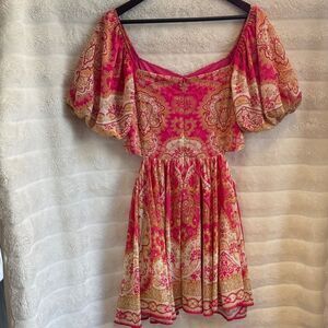 Flying Tomato Pink and Gold Paisley Mini Dress