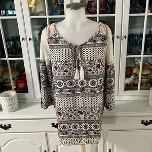Flying Tomato Boho Top Sz Small Black White Red