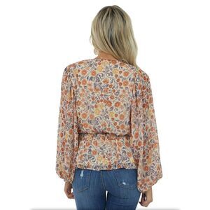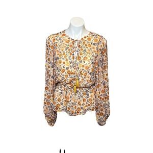 Flying Tomato NWOT floral print bubble sleeve peplum blouse size M. Style IT11408. Keyhole front. Ties with tassels. Sheer bubble sleeves with elastic cuffs. Elastic waist. 100% polyester. Length 24” Chest 17.5”.