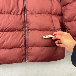 Flylow Gear down fill puffer coat in clay/maroon red