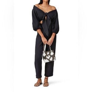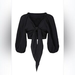 Flynn Skye Black Puff Sleeve Tiff Front Self Tie Top Chic Fall Cottage Coquette