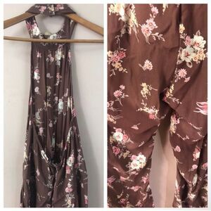 Flynn Skye Brown Floral Halter Jumpsuit Size S GUC