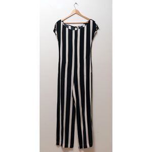 Never been worn, American-made striped jumper, shapeless fit with a flared leg. Comes with a tie belt (shown).