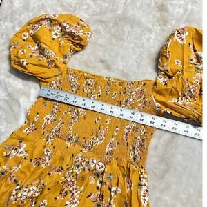 Flynn Skye Justine Romper Women's Medium Yellow Floral Puff Sleeve Smocked RTR