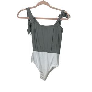 Flynn Skye Karlie Bodysuit Womens M/L Off White Tie Shoulders Preppy Minimalist