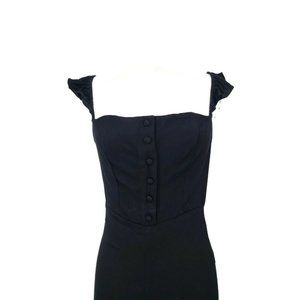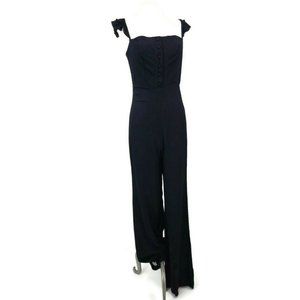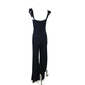 Elegant black jumpsuit with wide legs. Features a stylish shoulder strap detail. Perfect for any occasion.