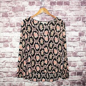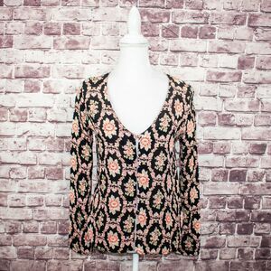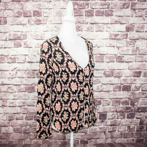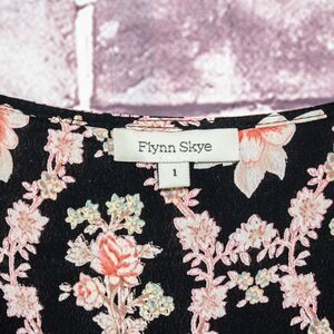Flynn Skye Women's Scoop Neck Button up Blouse Black Floral Print Sz 1