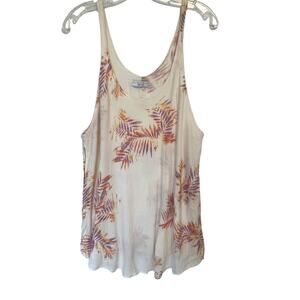Flynn Skye Swingy Tank Women's Large Cream Tropical Palm Print Scoop Neck Top