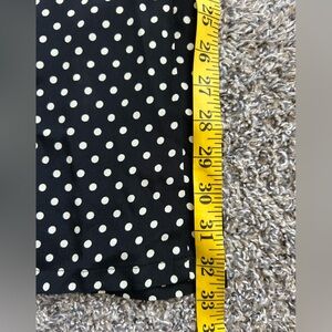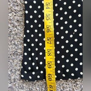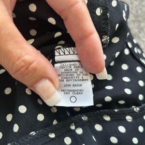 Flynn Skye Made in the USA one piece jumpsuit in black and cream polka dot pattern. Like new condition. Ruffled elastic straps to be worn on or off shoulder. Fitted bodice with fabric covered button detail. Zips in back. Wide leg loose flowing pants. Elegant warm weather style.