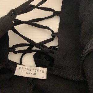Flynn Skye XS Ariel Flare Wide Leg Crepe Jumpsuit in Black