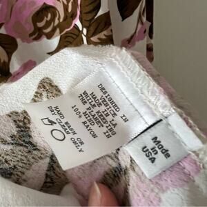 In good preowned condition. 100% rayon. Hand wash cold. Unlined. Front button closure. Front seam slit. Off-the-shoulder style.