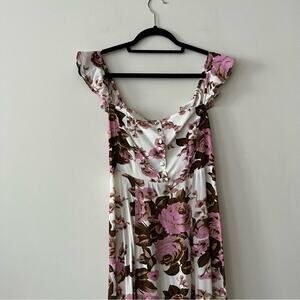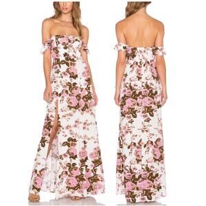 Flynn Skye x Revolve Bardot Maxi Dress in White Rose Floral Print