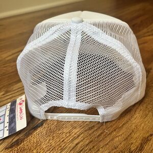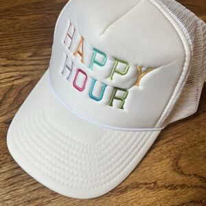 Brand new with tag white foam mesh trucker hat with braid detail and HAPPY HOUR embroidery