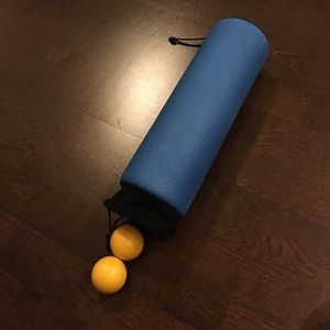Comes with two yellow balls that can go inside. Perfect for rolling out your feet
